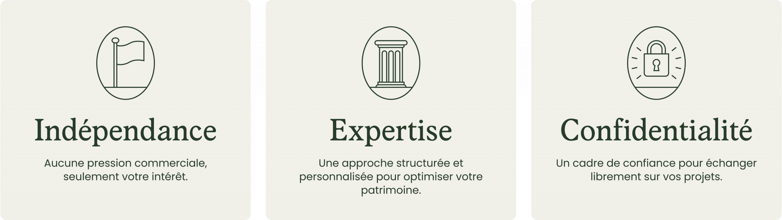 Notre approche se distingue par une écoute attentive, une analyse approfondie de votre situation et des solutions sur mesure adaptées à vos ambitions. Parce que chaque patrimoine est unique, notre mission est de vous accompagner avec des stratégies éprouvées et innovantes, garantissant une croissance sereine et pérenne.